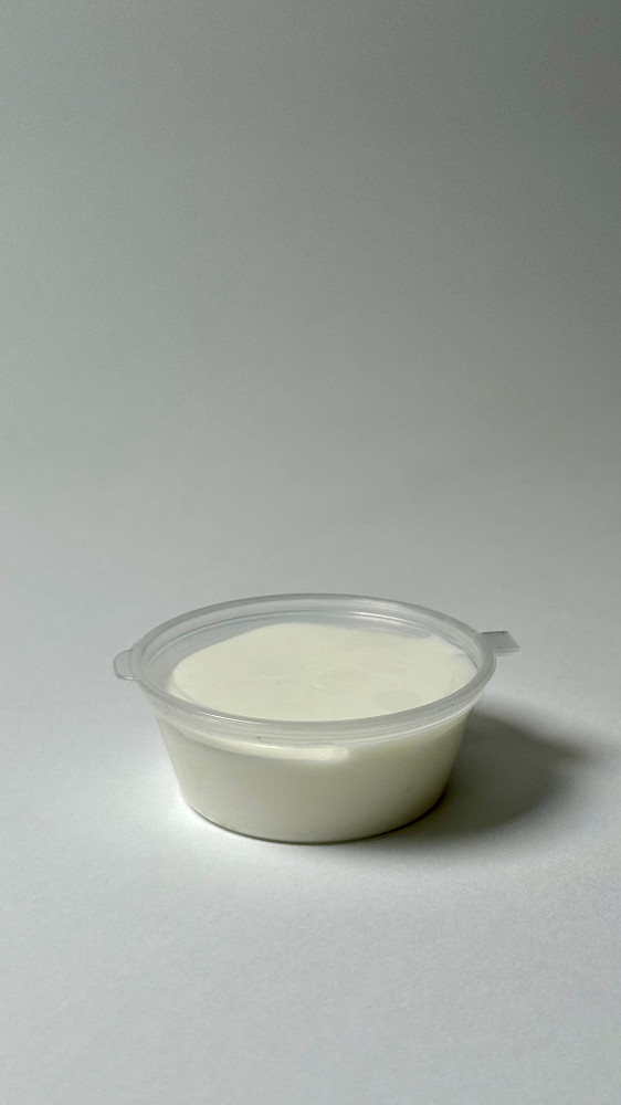 Склад: cолянка (курячий бульйон (30%), картопля (8%), томатна паста (8%), цибуля ріпчаста (7%), мисливські ковбаси* (6%), бочок копчений (6%), шинка копчена (6%), огірки квашені (5%), маслини (3%), морква (2%), зелень свіжа, олія соняшникова рафінована, сік лимонна, часник сухий, желатин, сіль кухонна, цукор білий кристалічний, перець чорний мелений.), сметана 20%